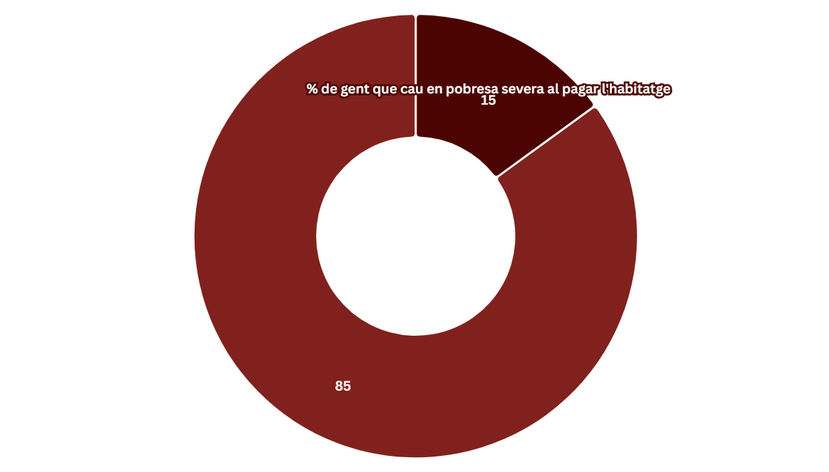 Aquesta pressió econòmica obliga moltes llars a compartir habitatge per poder afrontar el cost del lloguer. El 13,5% de les persones que comparteixen habitatge ho fan en situacions d’amuntegament greu, una realitat que té conseqüències directes sobre la qualitat de vida.