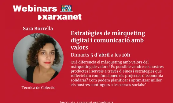 No és el mateix màrqueting amb valors que màrqueting de valors. Mentre el primer és el que utilitzen les multinacionals per apropar-se a un públic cada cop més socialment responsable, el segon és el que les entitats socials podem fer amb els valors que tenim al nostre ADN. Sara Borrella, tècnica de comunicació de la cooperativa Colectic, ha exposat les vies per aconseguir-ho al webinar de Xarxanet 'Estratègies de màrqueting digital i comunicació amb valors'.