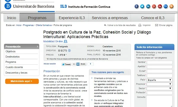 Obertes les inscripcions al “Postgrau en Cultura de la Pau, Cohesió Social i Diàleg Intercultural” Notícies Formació